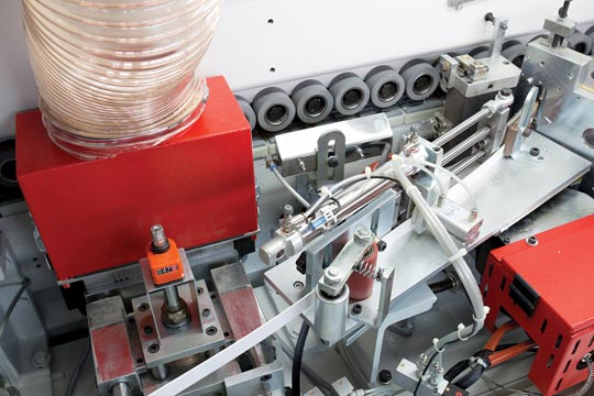 With its modern functional design and strong structure this all helps in maintaining a trouble-free machine. Its ease of operational use due to the convenient PLC based controls and CE regulated safety features. The T-EB-601 perfectly performs pre-milling, gluing, end cutting, top and bottom trimming, top and bottom corner rounding, grooving, radius scraping and buffing processes.